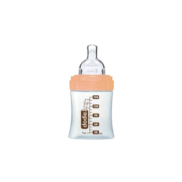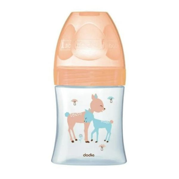 Le biberon en verre anti-colique Tétine plate Débit 1 Biche 150ml de la marque Dodie est un biberon innovant conçu pour faciliter l'alimentation de bébé. Ce biberon au motif de biches est surtout destiné aux nourrissons qui ont des coliques répétées.