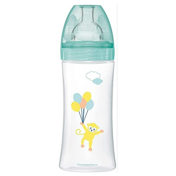 Le biberon anti-colique Débit 3 est doté d'une capacité de 330 ml, idéal pour un repas consistant, il est destiné aux bébés de 6mois et +.