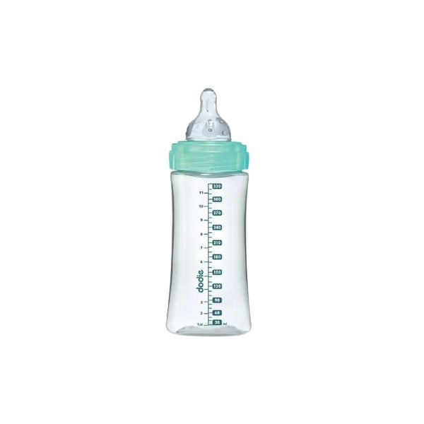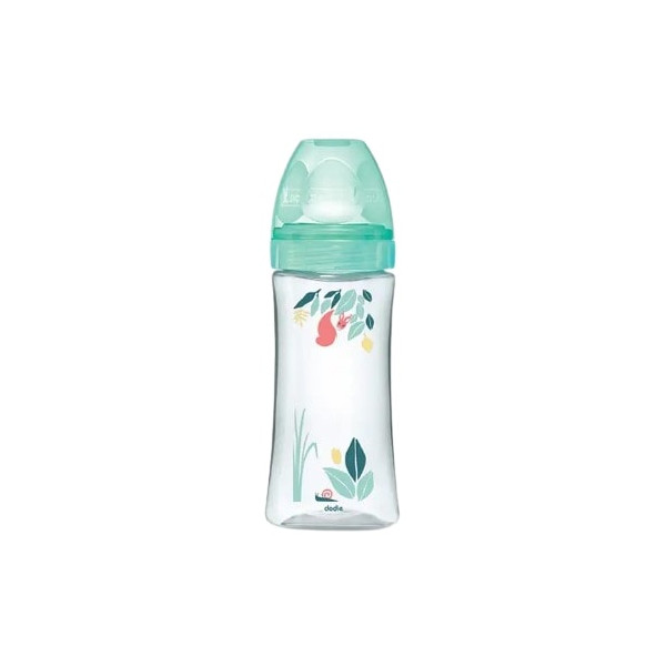Le biberon anti colique à tétine ronde de 330 ml et à 3 vitesses, à motif vert est un produit fabriqué en France par Dodie. La marque est connue pour ses produits de puériculture de qualité et fiables. Le biberon est présenté et vendu en article unique.