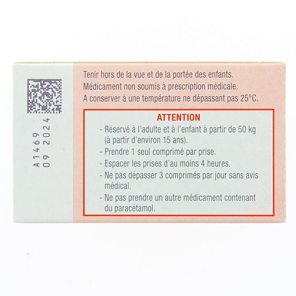 La dose maximale recommandée de paracétamol est de 4 g par jour chez l'adulte. Veillez à ne pas la dépasser. Les personnes pesant moins de 50 kg ou qui souffrent d'alcoolisme chronique, de dénutrition, d'insuffisance rénale grave ou d'hépatite virale doivent rester vigilantes quant à la prise de paracétamol et ne doivent pas dépasser 3 g de paracétamol par jour.