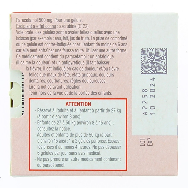 Les comprimés et les gélules à 500 mg sont destinés à l'adulte et à l'enfant de plus 6 ans et de plus de 27 kg.