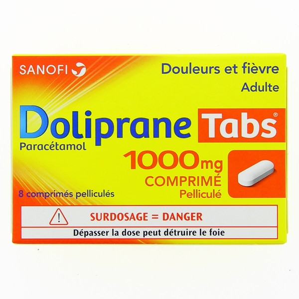 DolipraneTabs 1000mg contient 1 gramme de paracétamol. Ce médicament est indiqué en cas de douleurs et fièvre. Disponible en ligne sans ordonnance, DolipraneTabs 1000mg est disponible en boîte de 8 comprimés pelliculés. Ce médicament est réservé à l'adulte.
