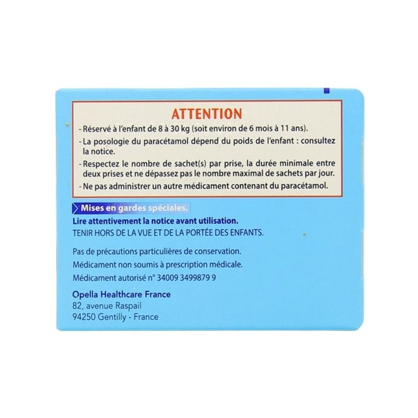 - Enfant de 8 à 12 kg : 150 mg, 1 à 4 fois par jour.