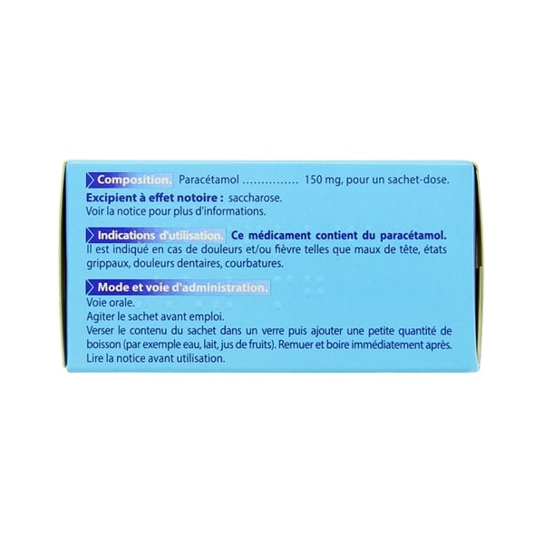 | Paracétamol | 150 mg | 150 mg | 200 mg |