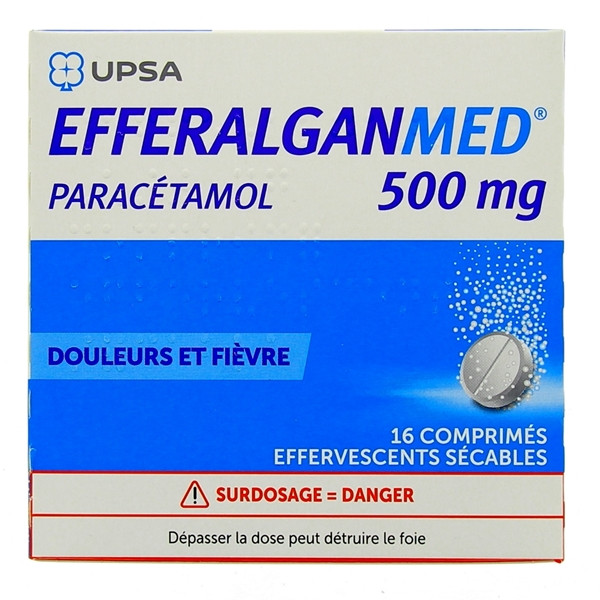 Boîte de 16 comprimés effervescents sécables d'Efferalgan 500mg.