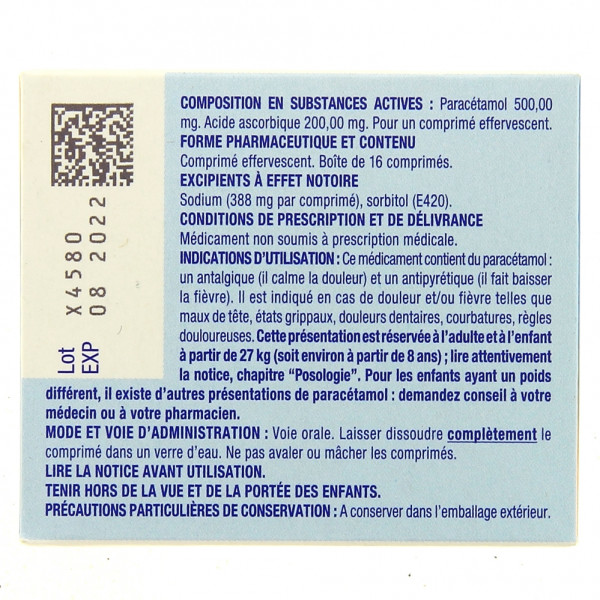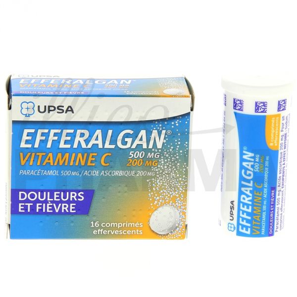Boîte de 16 comprimés effervescents 500mg/200mg.