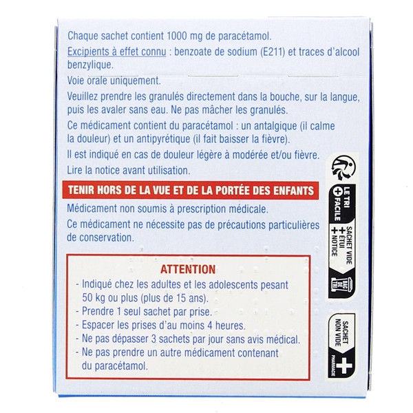 Les sachets à 1000 mg sont réservés à l'adulte et à l'enfant pesant plus 50 kg ou plus.