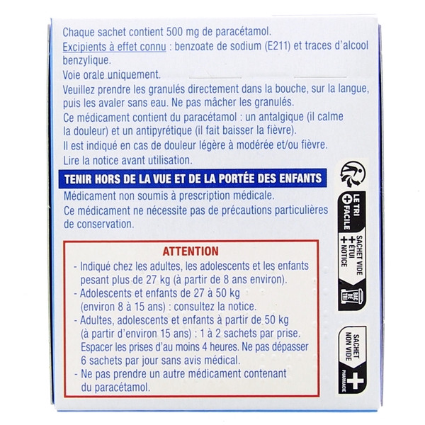 - Ne pas dépasser 3 sachets par jour sans avis médical.