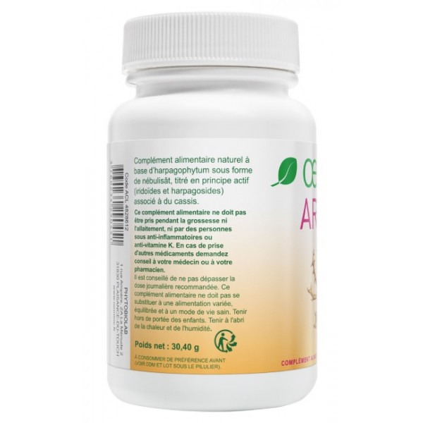 Ingrédients : Harpagophytum, cassis. Gélule végétale : polysaccharides (pullulan).