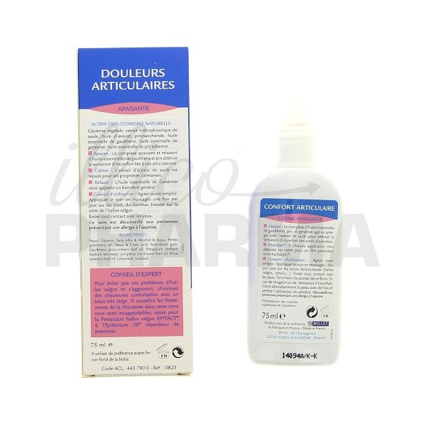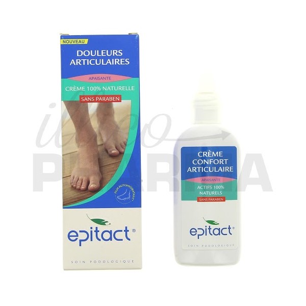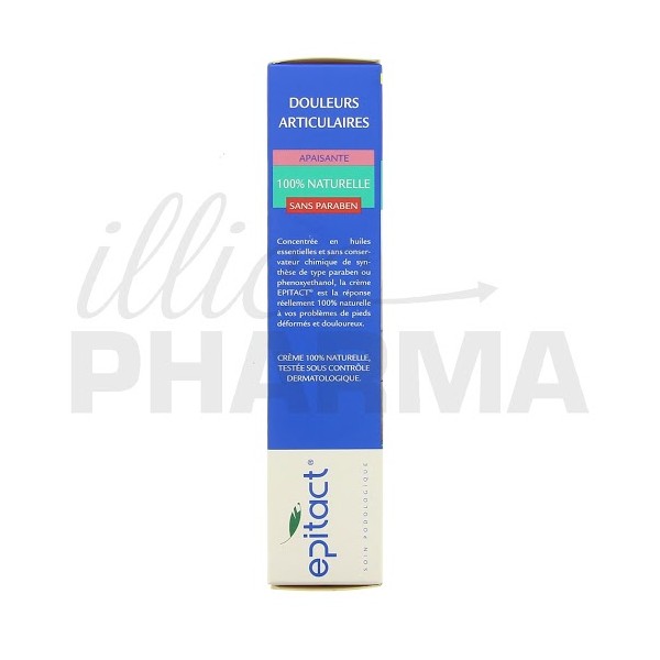 La crème apaisante des laboratoires Epitact a été élaborée pour soulager les douleurs articulaires du pied. L'alliance des 3 huiles essentielles qu'elle contient optimise son efficacité. La crème apaisante articulaire Epitact puise dans les vertus calmantes de l'huile essentielle de Gaulthérie pour atténuer les douleurs du pied. L'huile essentielle de Genévrier lui confère des propriétés relaxantes. Cette crème Epitact bénéficie également d'un apport en Huile essentielle de Pin, reconnue pour son effet positif sur la douleur. Le film protecteur de polysaccharide auto-hydratant dans la crème hydrate intensément la peau.