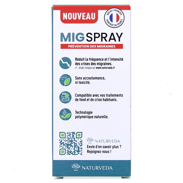 Les études cliniques ont montré une diminution significative de la fréquence et de l’intensité des crises au bout de 4 à 6 semaines. MIG SPRAY n’a pas vocation à se substituer aux traitements de fond ou de crise habituels, par contre ils peuvent être parfaitement associés.