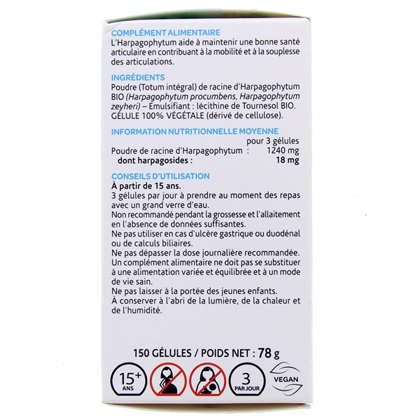 Arkogélules Harpagophytum Bio du laboratoire Arkopharma soulage les douleurs articulaires mineurs afin de contribuer à la mobilité et la souplesse articulaires.