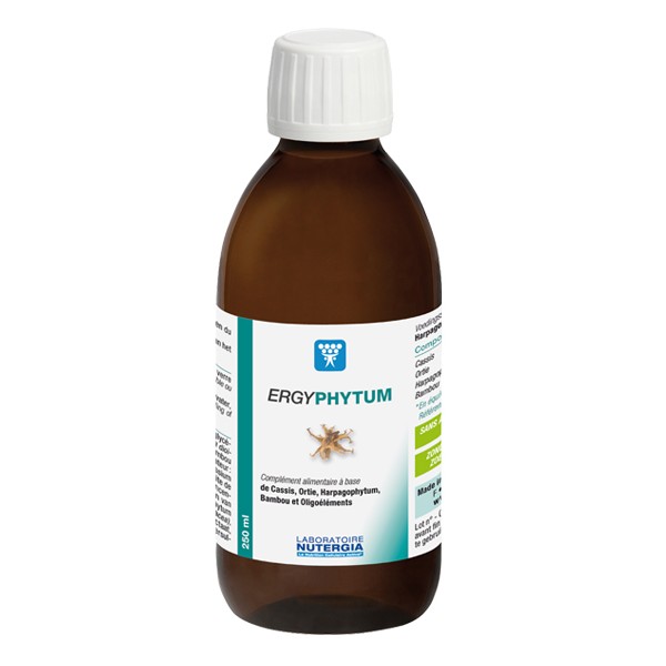 Ergyphytum est un complément alimentaire à base d’Harpagophytum, Cassis, Ortie, Bambou, Oligoéléments.