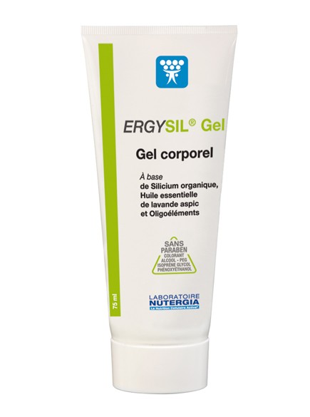 Gel Ergysil à base de silicium organique, huile essentielle de lavande aspic et oligoéléments.