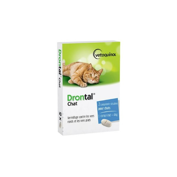 Drontal Chat est un vermifuge indiqué dans le traitement des vers ronds et des vers plats chez le chat et le chaton dès l'âge de 3 semaines. Il élimine efficacement et rapidement les nématodes gastro-intestinaux adultes (Toxocara cati (syn. mystax), Ancylostoma tubaeforme, Ancylostoma braziliense) et les cestodes gastro-intestinaux (Echinococcus multilocularis, Dipylidium caninum, Taenia hidatigera, Mesocestoides spp– Joyeuxiella pasqualei).