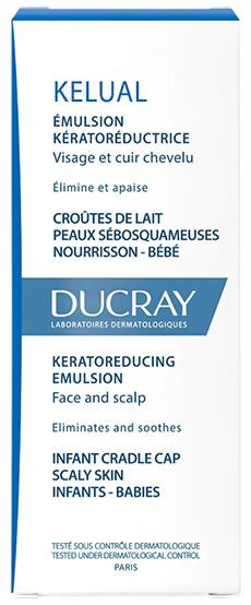 L'émulsion kératoréductrice Kélual, des laboratoires Ducray, spéciale croûte de lait, se compose d’une substance active brevetée, parfaitement tolérée, le Kéluamid. Celle-ci permet d’apaiser les rougeurs et éliminer de manière efficace les squames.