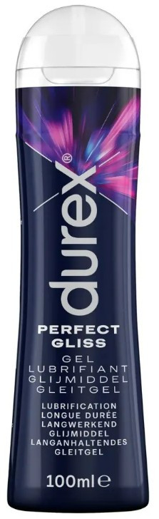 Le gel lubrifiant Perfect Gliss de la marque Durex, à base de silicone, offre une lubrification longue durée.