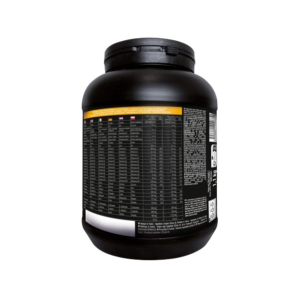 La formule de ce produit dédié à la construction musculaire contient 71 % de glucides mélangés à des protéines de lactosérum. Gainer Max — Eafit comporte 6 sources de glucides. Les sucres à IG élevé que le corps assimile rapidement permettent à l’organisme de profiter d’un apport énergétique immédiat. Leurs actions sont relayées par les sucres à IG faible qui fournissent une énergie durable. Parmi les composants à IG bas, citons entre autres l’avoine qui est connue pour ses multiples bienfaits sur la digestion. La préparation inclut en outre un complexe d’acides aminés (High Amino complex). Il renferme également de l’arginine et de la taurine qui stimulent les performances physiques et de la glutamine qui soutient le métabolisme des protéines musculaires. Gainer Max comporte aussi un dosage important de BCAA (acides aminés branchés), 15 minéraux et vitamines.