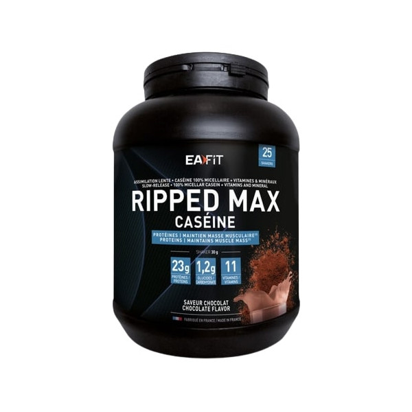 Fabriqué exclusivement par la marque Eafit en France, ce complément alimentaire a été élaboré en laboratoire par une équipe de nutritionnistes et d’athlètes professionnels. Il est destiné à satisfaire les besoins spécifiques des sportifs débutants ou chevronnés souhaitant conserver leur masse musculaire. Il représente aussi la solution idéale pour atténuer les petites faims. Comme les protéines de lait se digèrent lentement, Ripped Max Caséine permet alors de nourrir les muscles durant le sommeil.