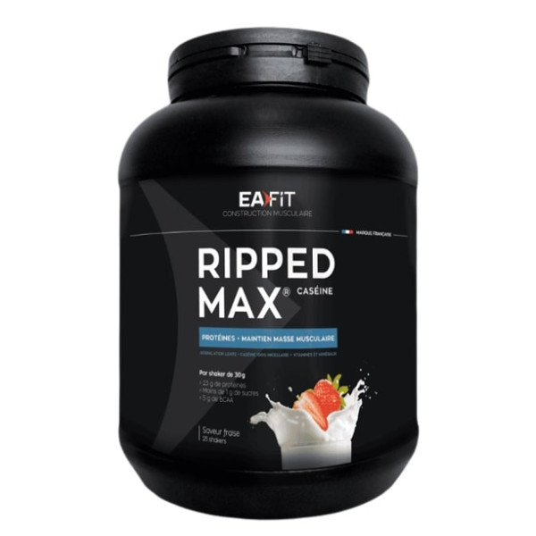 Eafit Ripped Max Caséine saveur Fraise est une préparation pour boisson sous forme de poudre. Cette boisson aide au maintien de la masse musculaire, même en période de sèche.