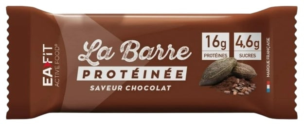 Enrobée de chocolat au lait, cette barre protéinée associe gourmandise et bienfaits nutritionnels. Elle illustre l’exigence de qualité nutritionnelle d’Eafit en étant un encas équilibré, pratique et savoureux. Elle est disponible en barre de 46 g.