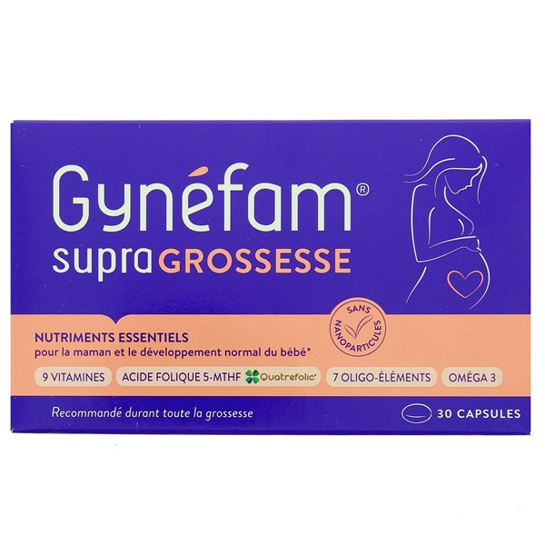 Gynefam Supra Grossesse est un complément alimentaire destiné à répondre aux besoins spécifiques des femmes enceintes. Il permet d’apporter les nutriments essentiels contribuant à une grossesse normale et au développement normal de bébé.