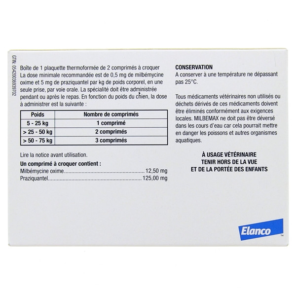 - Milbemax Chew ne convient pas aux chiens de moins de 5 kg.