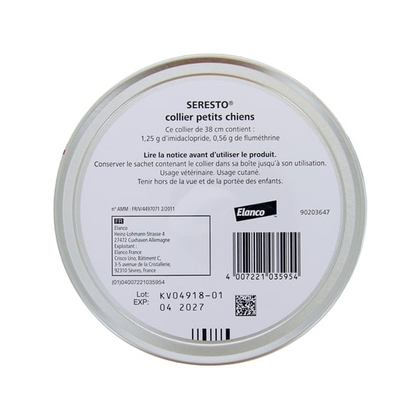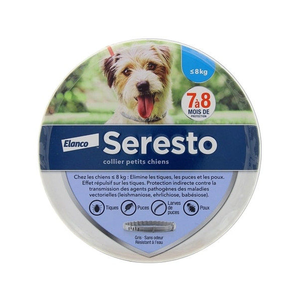 Le collier Seresto pour petits chiens est destiné aux chiens pesant jusqu’à 8 kg. C’est un produit efficace pour lutter contre l’envahissement des puces, des tiques et des autres parasites.