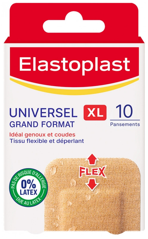 Les Pansements en Tissu déperlant Universel Grand Format XL Elastoplast sont parfaits pour couvrir et protéger les blessures des genoux et des coudes. Ils ont l'avantage d'être extra-flexible pour s'adapter aux mouvements.