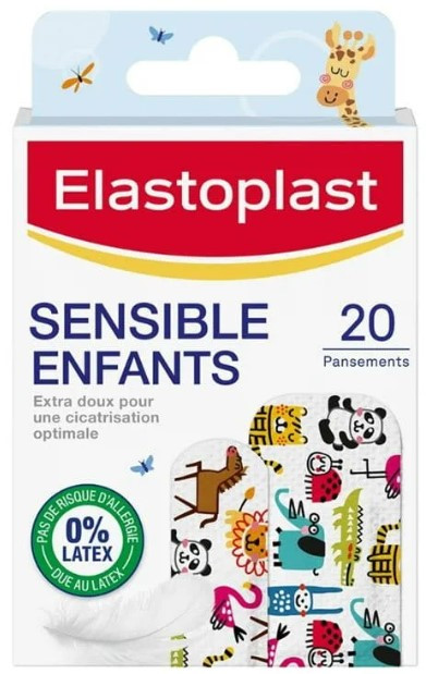 Les Pansements Sensible Enfants x20 ont été développés par Elastoplast pour protéger les plaies bénignes pouvant survenir au quotidien chez nos chers petits. Leur formule hypoallergénique et sans latex s’adapte à leur derme fragile. Décorés avec des motifs animaux, ces pansements s’enlèvent sans douleur.