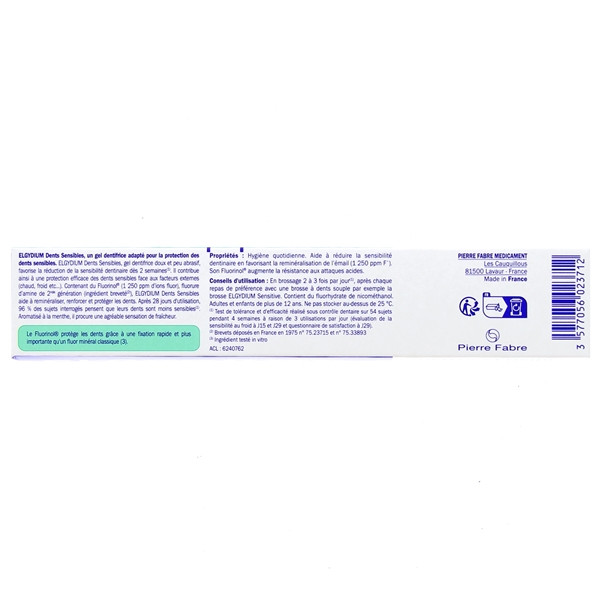 Le Dentifrice Dents Sensibles en tube de 75ml est fabriqué en France par Elgydium. Cette marque s’est engagée à trouver des solutions performantes aux différents problèmes dentaires, tels que la sensibilité dentaire, la formation de caries, l’apparition de la plaque dentaire.