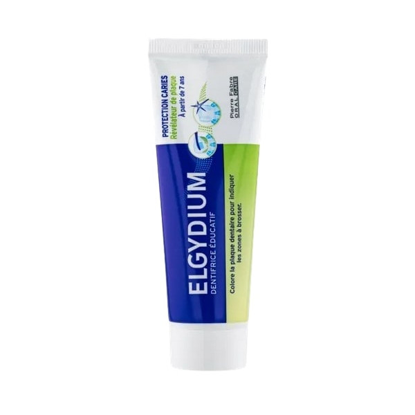 Le dentifrice Éducatif Révélateur de Plaque Elgydium colore la plaque dentaire pour indiquer les zones à brosser afin d'optimiser le brossage et de protéger efficacement les dents contre la formation des caries. Il convient à l'adulte et à l'enfant dès 7 ans.