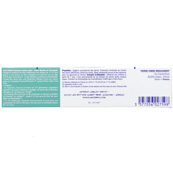 Meilleur allié des dents définitives fraîchement apparues, le dentifrice Elgydium Junior Astérix Menthe les protège et les consolide. Il est spécialement conçu pour les enfants de 7 à 12 ans. Il les aide à avoir des dents fortes et en bonne santé tout au long de leur croissance.