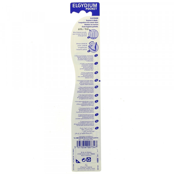 La Brosse à dents pocket de la marque Elgydium est la solution efficace pour le brossage des dents de l'adulte et de l'enfant de plus de 12 ans. Avec ses brins arrondis, elle ne blesse pas les gencives. Elle est très pratique, car elle est pliable.
