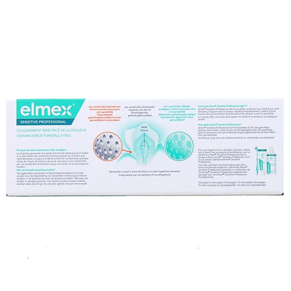 Le dentifrice elmex® Sensitive Professional s’attaque aux douleurs dentaires par une action ciblée. Sa technologie PRO-ARGIN associe l’arginine et le carbonate de calcium. Cette combinaison dépose une couche protectrice qui obstrue les canalicules dentinaires et empêche les signaux d’atteindre le nerf. L’application directe du dentifrice sur la zone sensible avec le doigt procure un apaisement rapide et offre l’opportunité de cibler les douleurs ponctuelles. Cette action immédiate soulage les personnes souffrant d’hypersensibilité et leur permet de reprendre leurs activités quotidiennes sans désagréments.