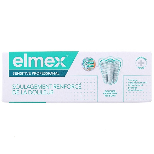 Le dentifrice Soulagement Renforcé de la Douleur de la gamme Sensitive Professional de la marque Elmex nettoie efficacement les dents tout en soulageant instantanément la douleur.
