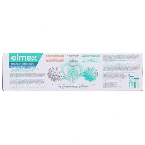 - Adultes et enfants de plus de 12 ans : appliquer directement 2 fois par jour Elmex Sensitive Professional Blancheur Dentifrice sur la partie affectée par la sensibilité dentaire et masser doucement pendant 1 minute. La douleur se dissipera instantanément.