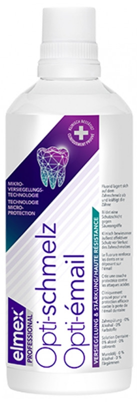 La solution dentaire Professional Opti-Émail de la marque Elmex est un bain de bouche qui aide à protéger et à renforcer l'émail des dents.