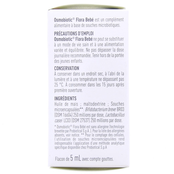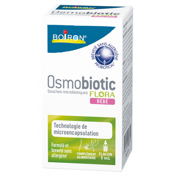Osmobiotic Flora Bébé du laboratoire Boiron est un complément alimentaire contenant des souches microbiotiques. Osmobiotic Flora bébé est recommandé pour maintenir de la flore intestinale des bébé entre 1 mois et 3 ans.