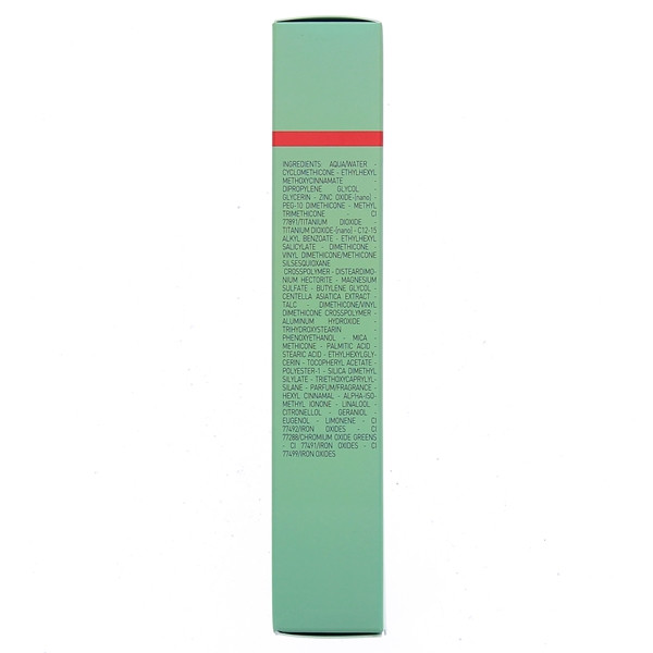 AQUA/WATER - CYCLOMETHICONE – ETHYLHEXYL METHOXYCINNAMATE - DIPROPYLENE GLYCOL - GLYCERIN - ZINC OXIDE-[nano] - PEG-10 DIMETHICONE – METHYL TRIMETHICONE – CI 77891/TITANIUM DIOXIDE - TITANIUM DIOXIDE-[nano] - C12-15 ALKYL BENZOATE – ETHYLHEXYL SALICYLATE - DIMETHICONE - VINYL DIMETHICONE/METHICONE SILSESQUIOXANE CROSSPOLYMER – DISTEARDIMONIUM HECTORITE – MAGNESIUM SULFATE - BUTYLENE GLYCOL -CENTELLA ASIATICA EXTRACT - TALC - DIMETHICONE/VINYL DIMETHICONE CROSSPOLYMER - ALUMINUM HYDROXIDE - TRIHYDROXYSTEARIN - PHENOXYETHANOL - MICA - METHICONE - PALMITIC ACID - STEARIC ACID – ETHYLHEXYLGLYCERIN - TOCOPHERYL ACETATE - POLYESTER-1 – SILICA DIMETHYL SILYLATE – TRIETHOXYCAPRYLYLSILANE - PARFUM/FRAGRANCE - HEXYL CINNAMAL - ALPHA-ISOMETHYL IONONE - LINALOOL - CITRONELLOL - GERANIOL - EUGENOL - LIMONENE – CI 77492/IRON OXIDES – CI 77288/CHROMIUM OXIDE GREENS - CI 77491/IRON OXIDES – CI 77499/IRON OXIDES