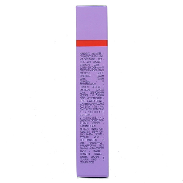 AQUA/WATER - CYCLOMETHICONE – ETHYLHEXYL METHOXYCINNAMATE - MICA - C12-15 ALKYL BENZOATE – DIPROPYLENE GLYCOL - GLYCERIN – ZINC OXIDE-[nano] - CI 77891/TITANIUM DIOXIDE - PEG-10 DIMETHICONE - METHYL TRIMETHICONE – TITANIUM DIOXIDE - TITANIUM DIOXIDE-[nano] - CI 77007/ULTRAMARINES - ETHYLHEXYL SALICYLATE - DIMETHICONE - BUTYLENE GLYCOL - DISTEARDIMONIUM HECTORITE – CI 77492/IRON OXIDES – MAGNESIUM SULFATE - CENTELLA ASIATICA EXTRACT - GLYCYRRHIZA GLABRA (LICORICE) ROOT EXTRACT - TALC - VINYL DIMETHICONE/METHICONE SILSESQUIOXANE CROSSPOLYMER - DIMETHICONE/VINYL DIMETHICONE CROSSPOLYMER – ALUMINUM HYDROXIDE - TRIHYDROXYSTEARIN - METHICONE - PALMITIC ACID - POLYESTER-1 - STEARIC ACID – SILICA DIMETHYL SILYLATE – TOCOPHERYL ACETATE - ETHYLHEXYLGLYCERIN - TIN OXIDE - PHENOXYETHANOL - PARFUM/FRAGRANCE – HEXYL CINNAMAL - ALPHA-ISOMETHYL IONONE - LINALOOL - CITRONELLOL - GERANIOL - EUGENOL - LIMONENE - CI 77491/IRON OXIDES - CI 77499/IRON OXIDES