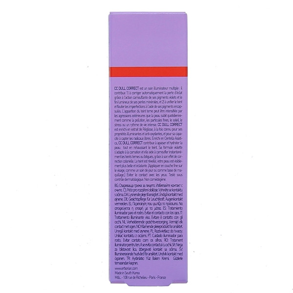 Ce soin embarque une formule violette s’adaptant parfaitement à la carnation tout en aidant à camoufler les teints ternes ou fatigués. CC Dull Correct a été conçu avec une composition enrichie en :