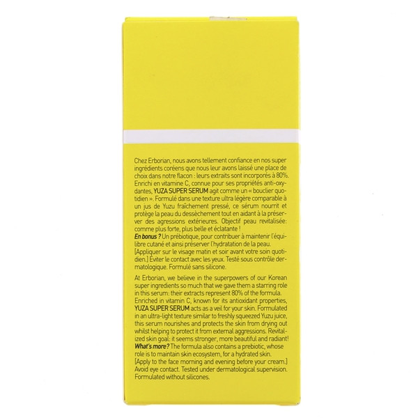 Yuza Super Serum de la marque Erborian est un soin antioxydant pour la peau du visage. Il permet de nourrir et protéger efficacement la peau contre les agressions extérieures.