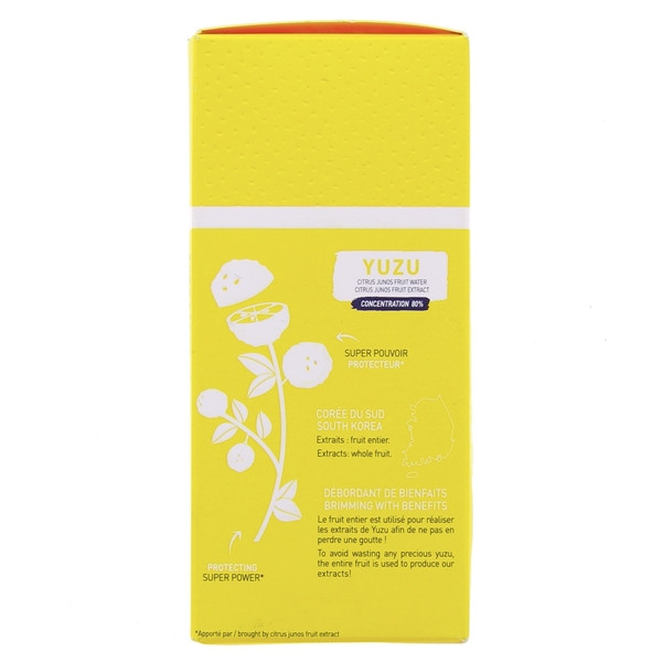 Le secret de ce produit réside dans sa composition à base d’Yuzu qui y est présent à hauteur de 80 %. Les extraits de fruit d’Yuzu sont réputés pour leurs vertus hydratantes et antioxydantes. Ses effets sont renforcés par le céramide C24 qui contribue à la protection de la barrière cutanée. De plus, les extraits aqueux d’Yuzu, obtenus par distillation à la vapeur, apportent les minéraux essentiels à l’hydratation de la peau. Ils procurent une sensation de fraîcheur et de vitalité.