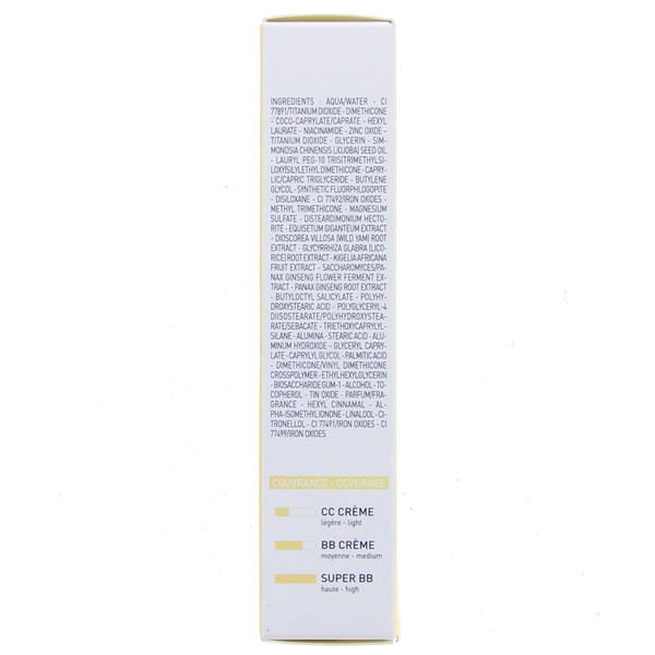 Grâce à sa formule mi-teint mi-soin, Super BB couvre efficacement les marques disgracieuses comme les rougeurs et les taches pigmentaires. Sa teinte « Nude » convient bien aux peaux beiges et claires.