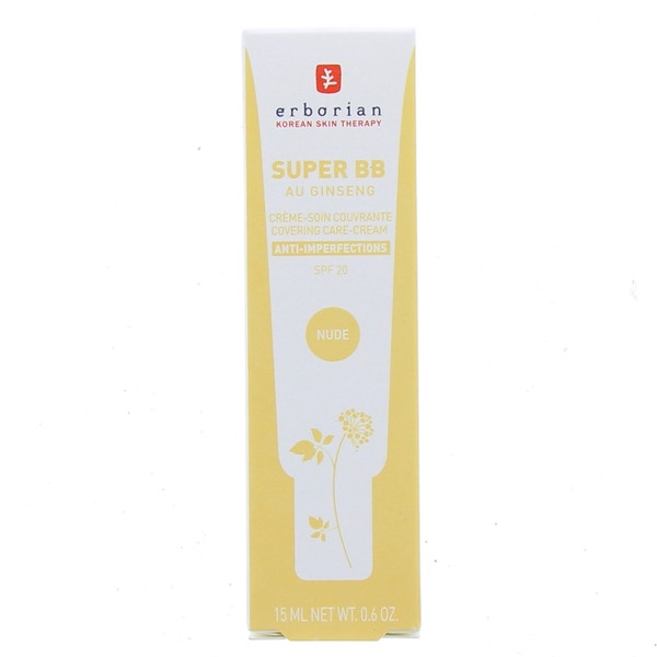 Super BB Nude de la marque Erborian est une crème-soin couvrante anti-imperfection avec une protection SPF 20. Ce soin permet de camoufler les imperfections, d'apporter une hydratation et d'unifier le teint.