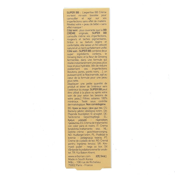 Les bienfaits apportés par ce Super BB vont bien au-delà de son action hydratante. En effet, grâce à la présence du Niacinamide, un actif puissant, elle combat efficacement les imperfections cutanées comme les boutons, les pores dilatés et les points noirs. Votre peau deviendra alors plus nette, jour après jour. Son fini satiné naturel et sa couvrance parfaite vous garantissent un teint impeccable sans effet de matière toute la journée.