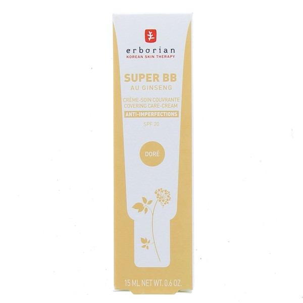 Super BB Doré de la marque Erborian est une crème-soin couvrante anti-imperfection avec une protection SPF 20. Ce soin permet de camoufler les imperfections, d'apporter une hydratation et d'unifier le teint.