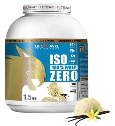 Produit de la marque Eric Favre, Iso Zero Vanille permet de développer les muscles. Cette préparation hyperprotéinée a une saveur vanille.