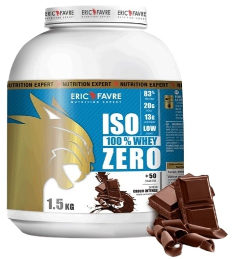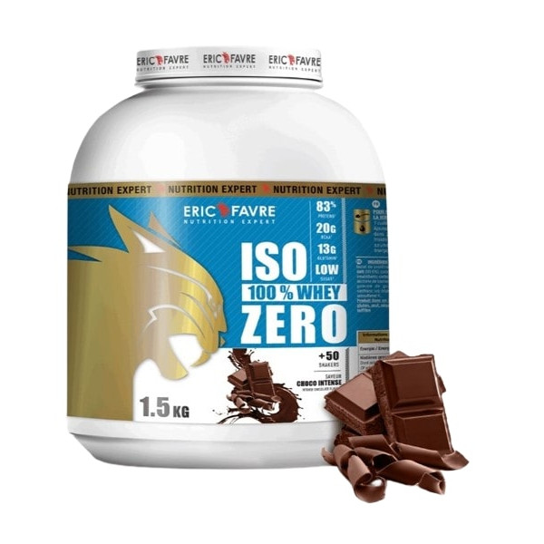 Iso Zero Choco Intense proposé par la marque Eric Favre est constituée de plus de 83 % de protéines de whey (WPI, WPC), l'une des plus pures sources de protéines. Cette préparation est indiquée pour favoriser le développement musculaire.
